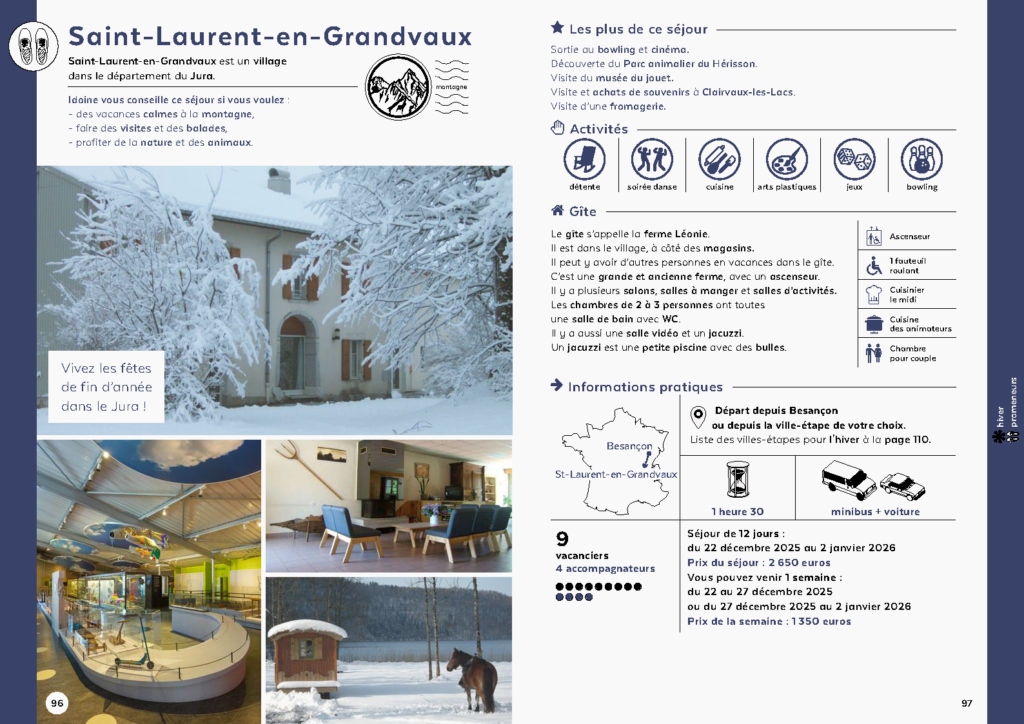 Les séjours de l’hiver 2025 auront lieux entre le 22 décembre 2025 et le 2 janvier 2026