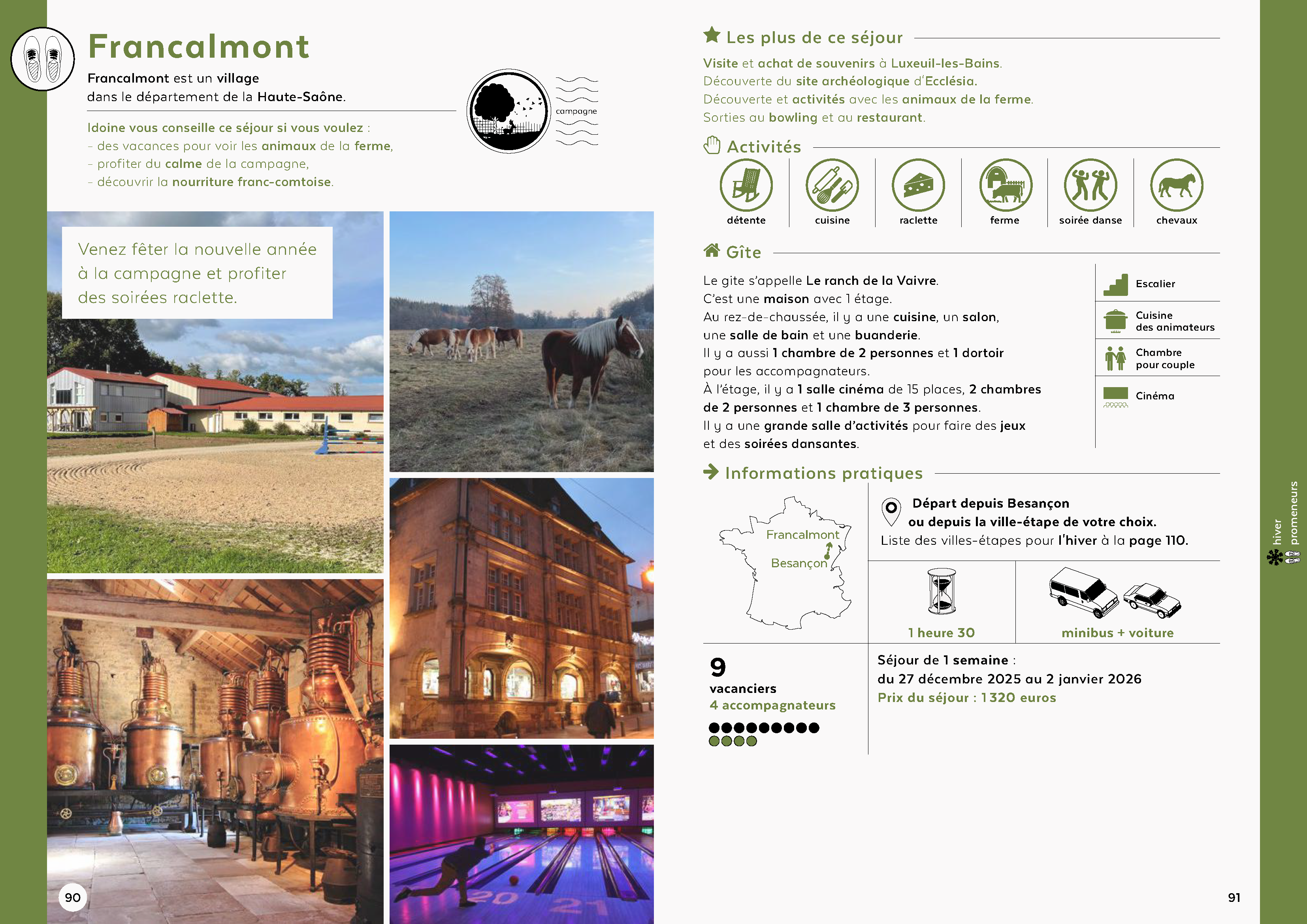 Les séjours de l’hiver 2025 auront lieux entre le 22 décembre 2025 et le 2 janvier 2026